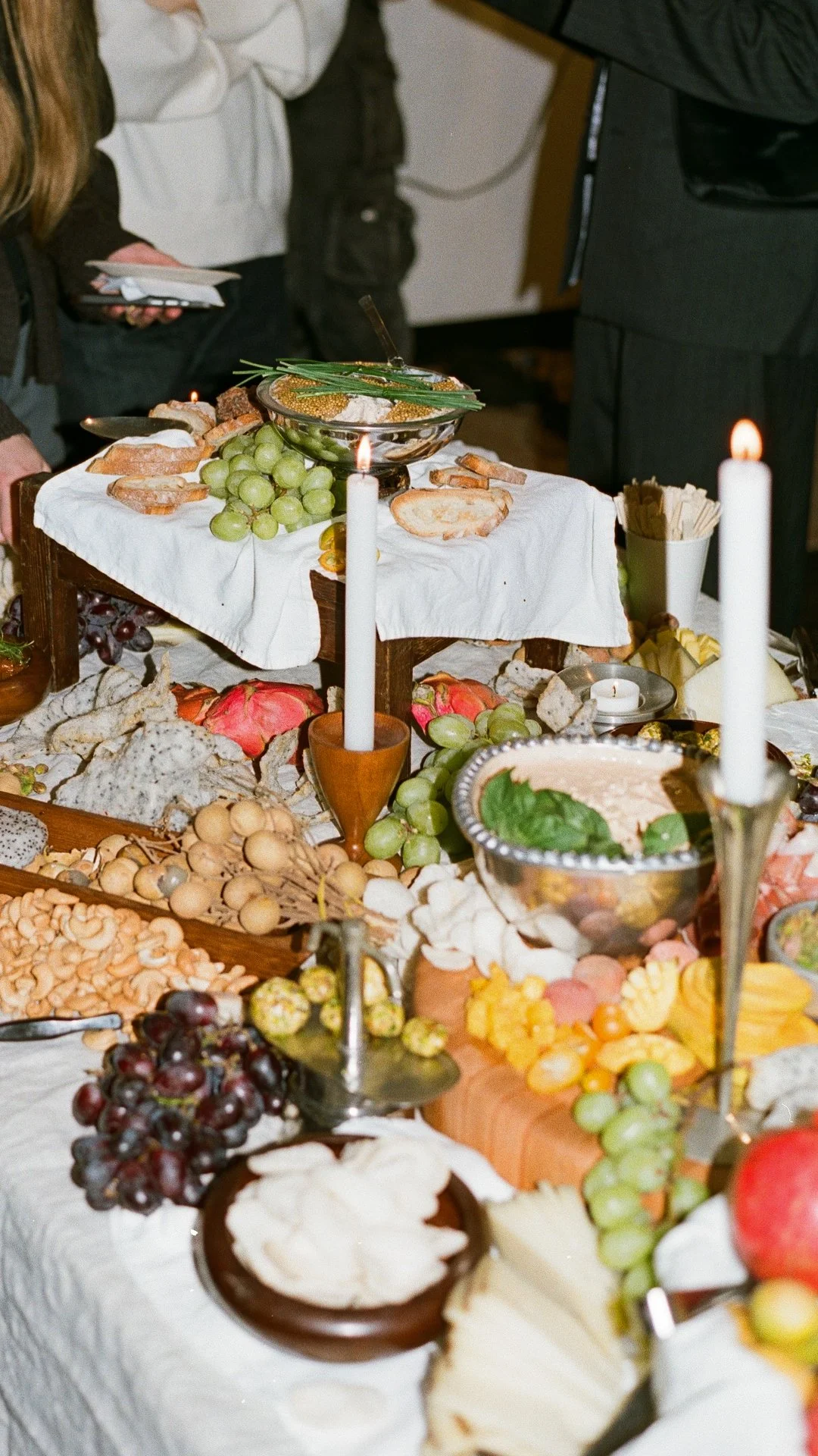 For this project, I designed an edible centerpiece to capture the energy of the space and conversation. This installment turned a meal into a moment of discovery. The table was arranged as a landscape of food: hills of cashews, vessels of dips and clusters of longan fruit atop a teak surface. Guests were invited to explore the tablescape from all angles, to taste and connect. The table became a visual focal point and a communal interaction, elevating the experience of the evening.